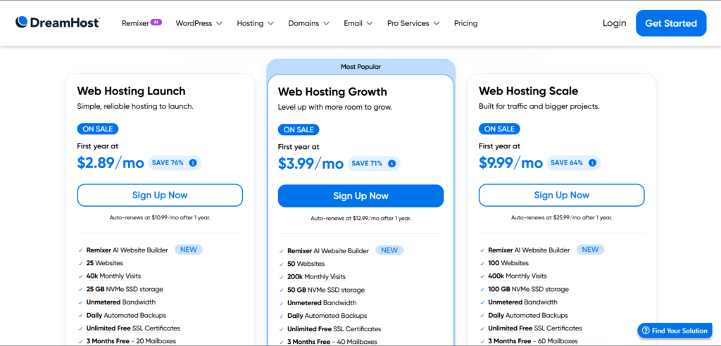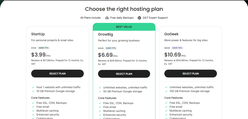 If you need a hosting plan that allows for more than one website, GrowBig is